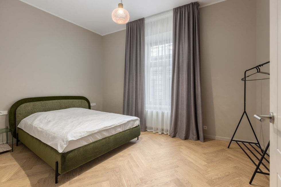 On offer is a furnished 3-room apartment in a renovated building. The apartment is located on the 4th floor of the building and is equipped with everything you need for comfortable living.The layout includes a spacious living room combined with a kitchen area, two bedrooms and two spacious bathrooms.The purchase price includes a fully equipped kitchen and furniture.For an additional fee it is possible to buy a well-equipped storage room in the courtyard of the house and a garage in the courtyard of the house.Completely renovated building with illuminated facade.Convenient elevator.Reduced real estate tax.Wooden double-glazed windows.Air recuperation system.Management app for easy communication.The building is located in the protection zone of the UNESCO “Historic Centre of Riga” and has been awarded the level of cultural heritage value – “building of cultural heritage value”.This apartment is a great choice for those who want to live in a modern and historical place, enjoying all the comfort and beauty Riga has to offer.